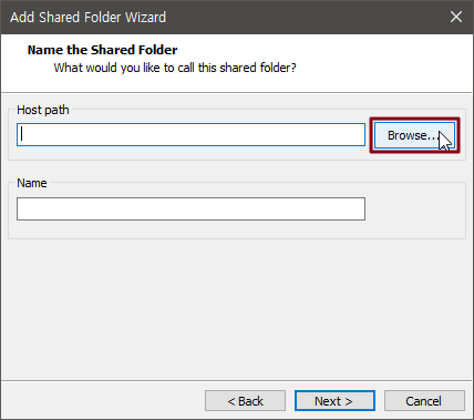 4. 'Add...' 버튼을 클릭한 후 위저드의 진행에 따라서 Host PC에 있는 공유할 폴더를 선택해 줍니다.