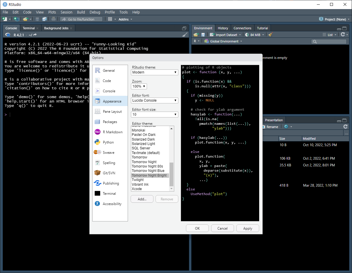 1. RStudio의 메뉴바에서 Tools > Global Options...을 선택합니다.
