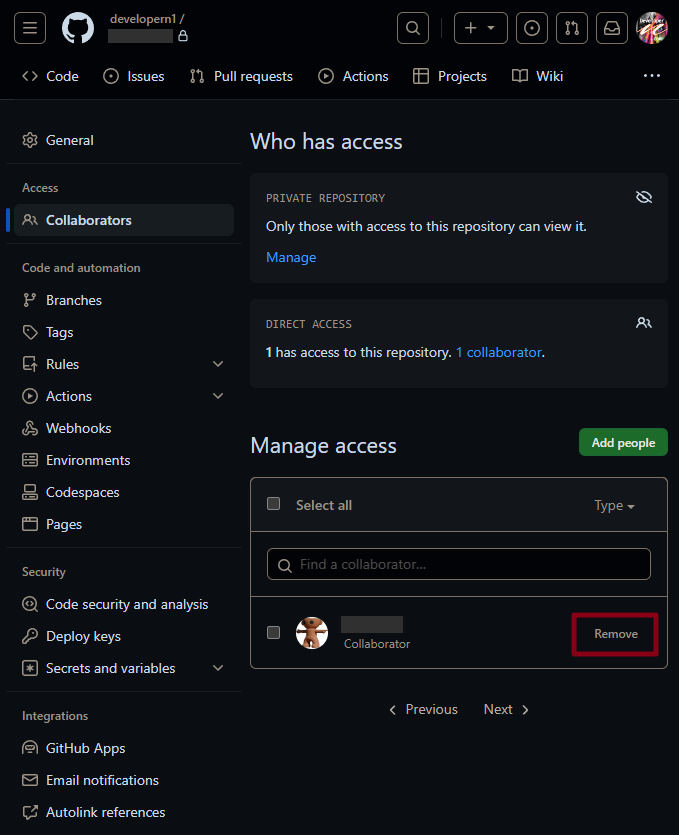 Collaborator를 추가하면 주의할 점이 한가지 있습니다.