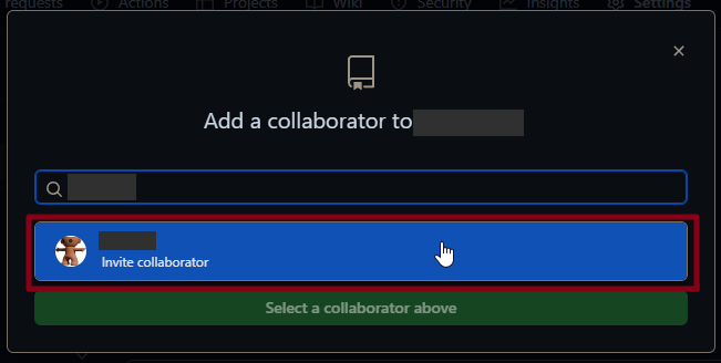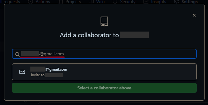 2. 새로 나온 창에 GitHub에 등록된 상대방의 ID나 이메일을 입력합니다.