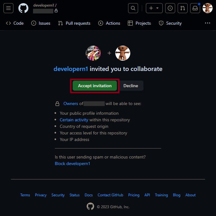 여기서 'Accept invitation' 버튼을 클릭합니다.