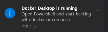 3. 시스템이 리부팅 되고나면 윈도우에서 다음과 같은 알림을 보여주고, 도커를 실행시킨다.
