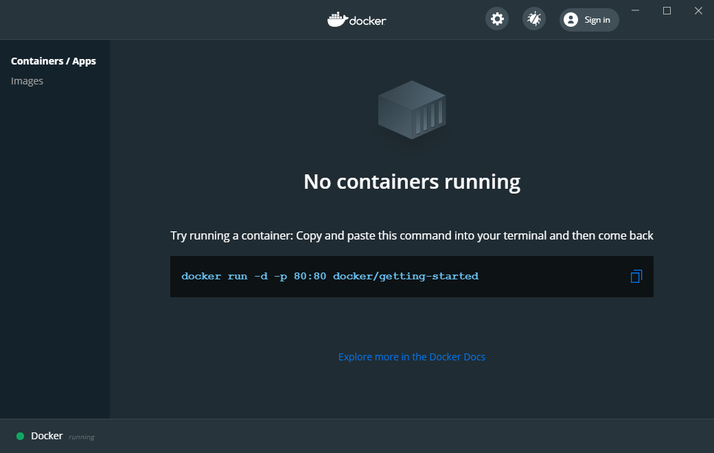 아직 이미지를 사용하지 않아서 내용은 없지만 잘 설치되어 있는 것을 알 수 있다.