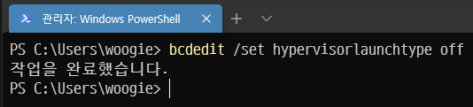 (주의) 만일 충돌 해결 후에도 WSL2는 계속 사용하길 원할 경우 이 방법을 추천하지 않습니다.