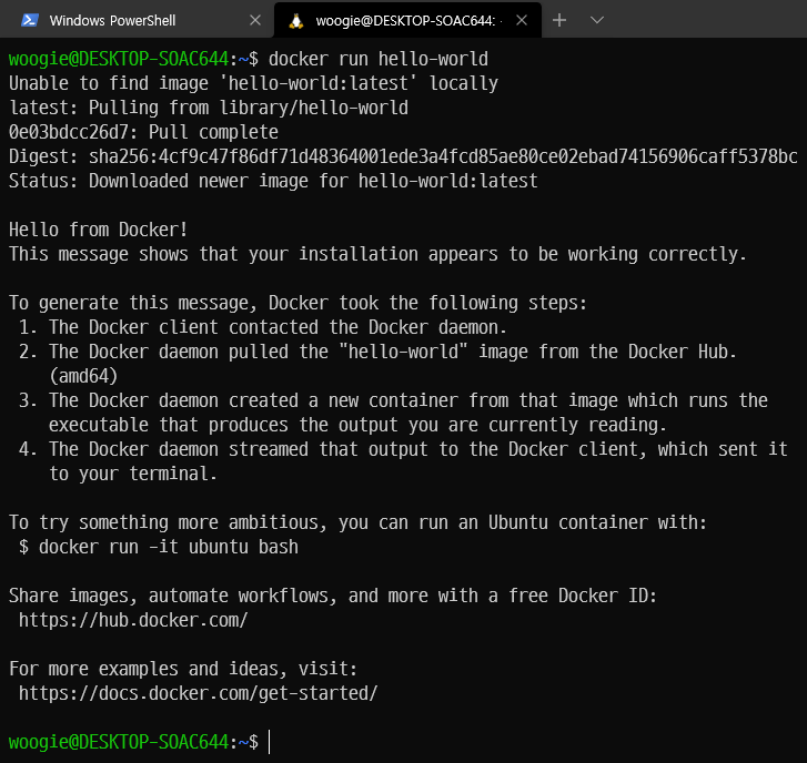 5. 이제 Docker가 잘 설치 되었는지 확인한다.