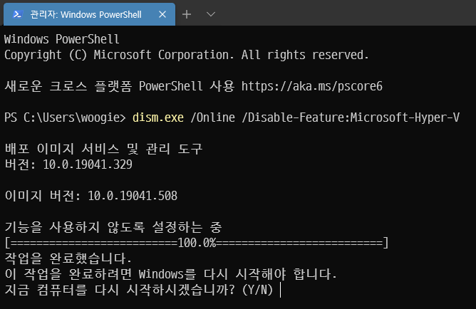 Hyper-V관련 설정 제거 방법은 다음과 같다.