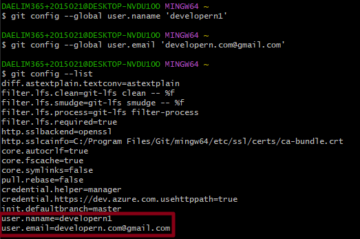 git config --list # 모든 설정을 확인