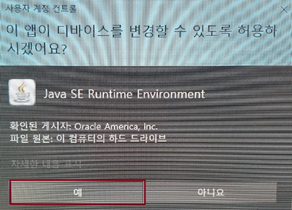 실행하면 다음과 같은 창이 나타납니다. 이 때 "예" 버튼을 클릭해 줍니다.