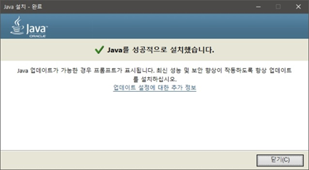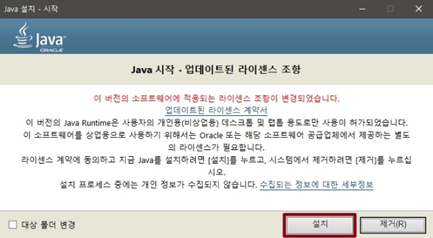 * 이 전에는 설치할 때 JDK를 설치할지를 선택하도록 되어 있었으나 위와 같이 설치하면 간단하게 JRE만 설치할 수 있습니다.