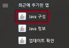 4. 설치가 끝나면 “win”키를 누르거나 시작 버튼을 클릭하고, 설치된 것 중에서 “Java 구성”을 클릭합니다.