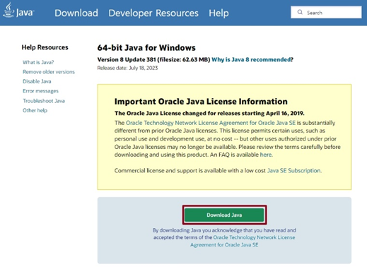 1. Java 사이트( https://www.java.com/ )에서 다운로드합니다.