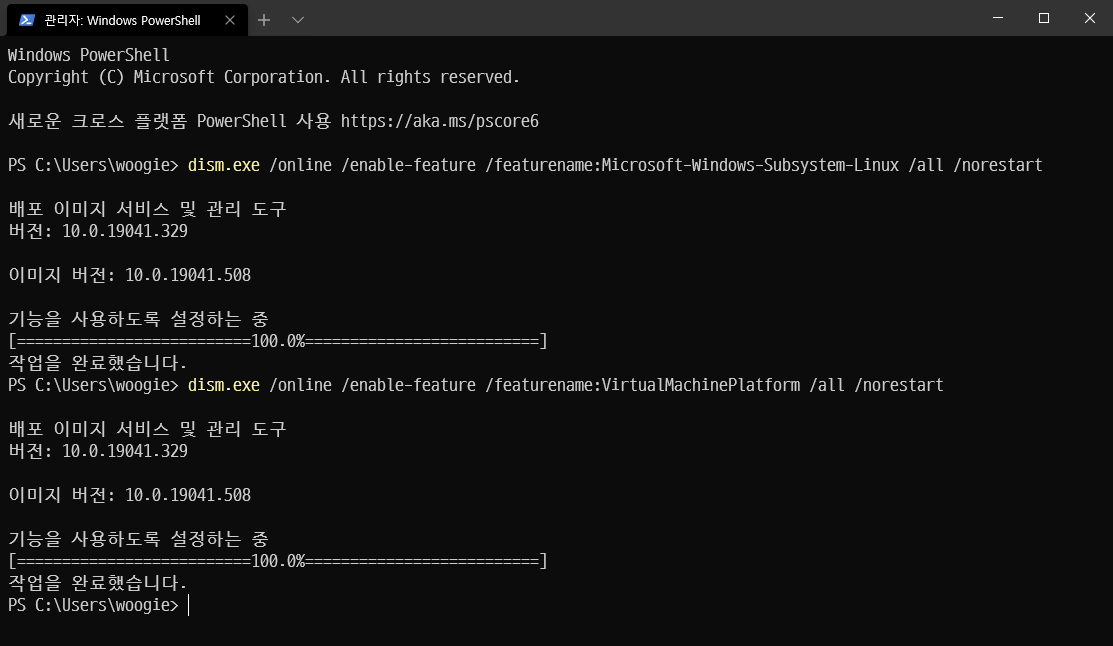 1) WSL (Windows Subsystem for Linux) 기능 활성화