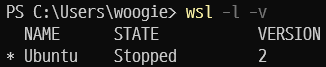 배포목록에 방금설치한 ubuntu가 WSL2에 등록된 것을 확인할 수 있다.